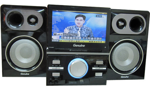 捷元 GA-DV8120U 多功能組合音響,內鍵7吋LCD顯示功能,可收看數位電視作,並支援播放DVD/DVD-R(W)/MP3/(S)VCD/CD-R(W),內建AM/FM收音,並可旋鈕調整搜尋頻道,USB輸入裝置及SD/MMC讀卡槽,可直接插入隨身碟或記憶卡,NTSC/PAL雙制式系統自動切換,多種播放模式選擇,快進(退)/慢進(退)/跳進(退),支援多國語言,重複播放及選曲功能。
