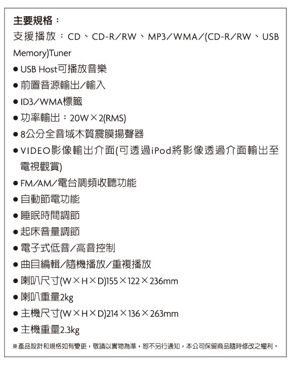 ※以上規格資料若有任何錯誤,以原廠所公佈資料為準。