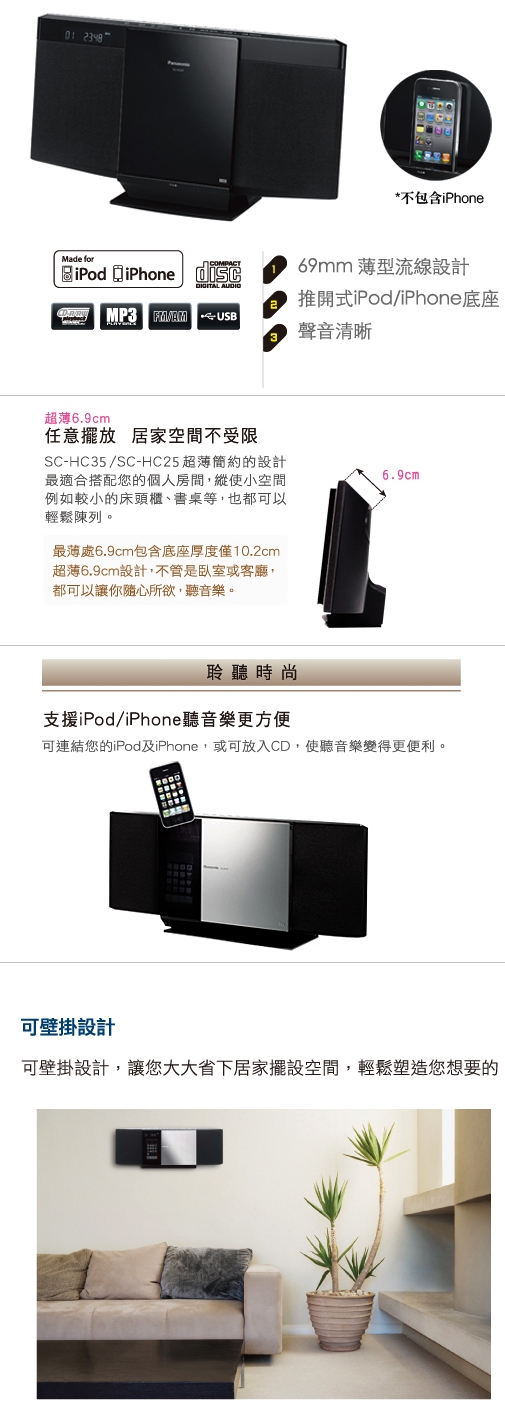 Panasonic超薄 時尚設計緊湊型立體聲音響SC-HC25