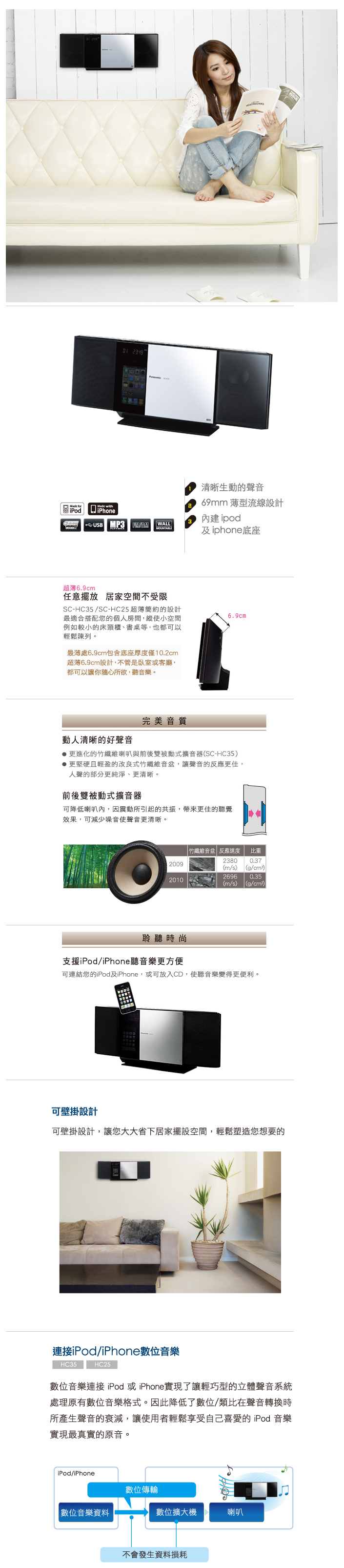 Panasonic 國際牌薄型組合 iPod/MP3組合音響SC-HC35