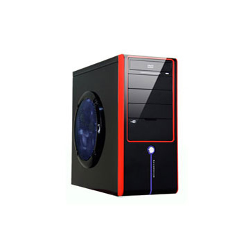 四大七小 前/後板各附1顆12cm風扇 側板附25CM藍色冷光風扇 紅黑450x185x410mm 前置2 x USB 2.0,2 x Audio 支援HD Audio