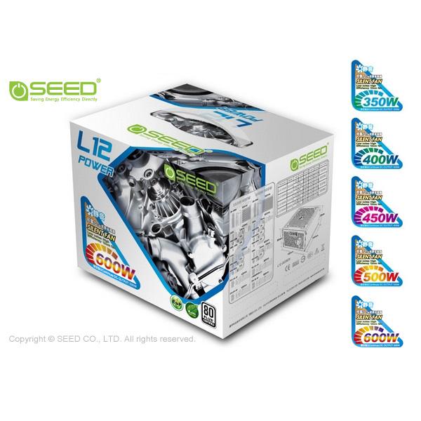 SEED種子電源新一代L12電源供應器,維持一貫高品質用料與80PLUS高效率規格,獨家專利L TYPE外觀結構設計,大幅增加耐用強度與散熱導流。全系列搭載APFC主動式功率校正支援100-240V FULL RANGE全域電壓,並且符合歐盟RoHS無鉛製程與EuP低耗電環保指令,極靜音12公分智慧型溫控風扇,兼顧安全散熱與使用寧靜優點,加長型出線設計與充足的接頭數,從此不需再為線長或轉接煩惱,完善的安全保護與通過多國安全規範,業界首創三年保固免費0800到府收送,最優質的規格與貼心完善的售服,高效率電源首選,就是SEED種子電源。