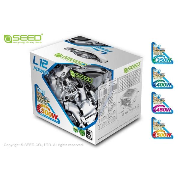 SEED種子電源新一代L12電源供應器,維持一貫高品質用料與80PLUS高效率規格,獨家專利L TYPE外觀結構設計,大幅增加耐用強度與散熱導流。全系列搭載APFC主動式功率校正支援100-240V FULL RANGE全域電壓,並且符合歐盟RoHS無鉛製程與EuP低耗電環保指令,極靜音12公分智慧型溫控風扇,兼顧安全散熱與使用寧靜優點,加長型出線設計與充足的接頭數,從此不需再為線長或轉接煩惱,完善的安全保護與通過多國安全規範,業界首創三年保固免費0800到府收送,最優質的規格與貼心完善的售服,高效率電源首選,就是SEED種子電源。