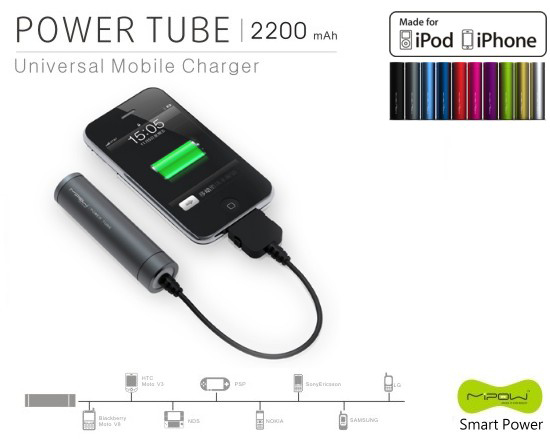 Power Tube 2200操作起來簡易快捷,只需將配備的電源線連接對應的適配插頭,即可進行充電。隨機提供多種USB接頭,可為不同的行動終端產品充電包括iPod / iPhone / Blackberry / HTC / Motorola / LG / Sony Ericsson / Samsung / PSP / NOKIA / Nintendo DSL / DSi / 3DS / PSP。(不支援iPad)