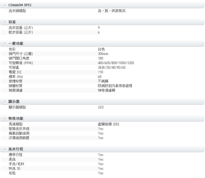 LG WD-90MFD 滾筒洗衣機滾筒洗衣機,洗脫烘一次完成