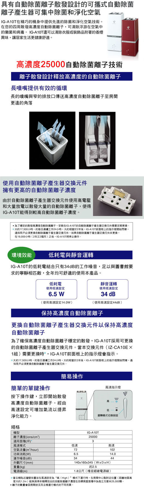 【商品名稱】 SHARP自動除菌離子產生器IG-A10T- W(白)