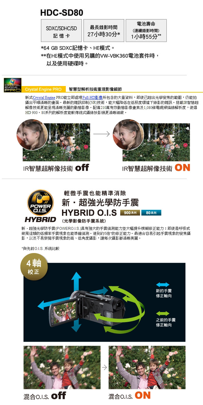 【商品名稱】 Panasonic HDC-SD80 數位攝影機(黑)
