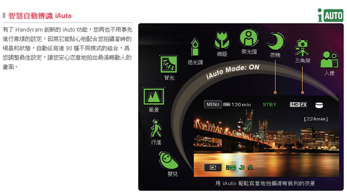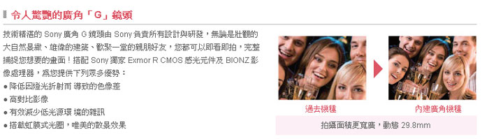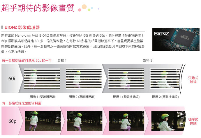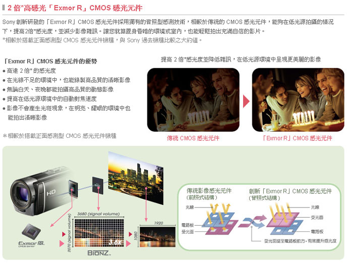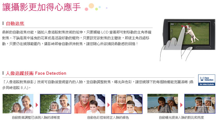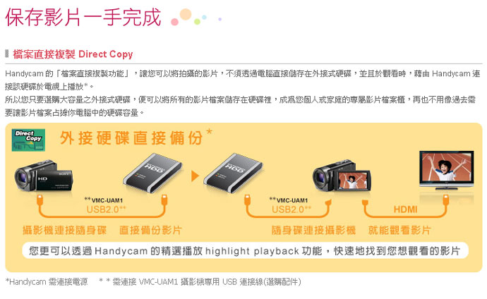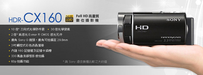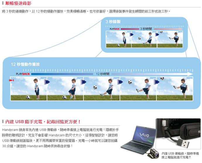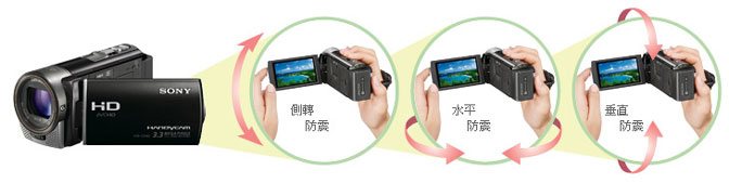 無論是走動跟拍小朋友的好動畫面、或邊騎自行車邊記錄沿路經歷,現在有了光學防震功能 Optical Steady Shot 提升 10 倍* 的 Handycam,影像回憶將能更穩定清晰,望遠端更有2倍防手震的功能! *與 Sony 過去機種比較之大約值。 除了防震效能提升 10 倍,Handycam 三向式全方位防震技術 ,帶來前所未有的穩定影像品質。怎麼動,怎麼錄,加上輕巧的身型,大大增加以 Handycam 記錄各種生活影像的實用性!