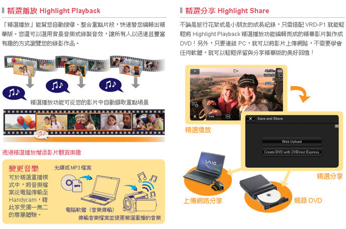 檔案瀏覽軟體 Picture Motion Browser (隨機附贈) Picture Motion Browser 編輯軟體能讓您發揮自己的創意,輕鬆進行影像編輯、儲存與分享。