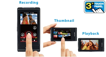 全新的PICSIO 數位靜相攝相機採用了觸控式銀幕設計, 只要輕觸幾下圖像式功能介面,就可馬上快速的進行影片的拍攝或播放。即使你戴著手套操作設定,一樣沒問題! 3吋的液晶大銀幕讓您一覽無遺的快速進行影片觀賞與播放。