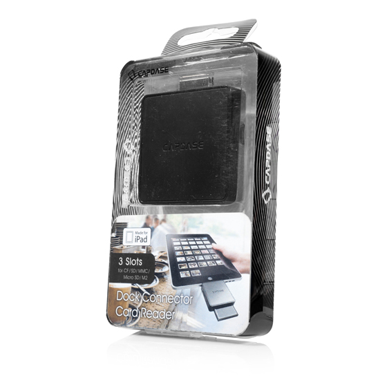 3卡位-直接從記憶卡導入照片 -使用iPad的照片程式導入和流覽照片 -支援CF/SD/MMC/XD/Micro SD/M2記憶卡 -支援標準照片格式,包括JPEG和RAW -不支援iPhone和iPod -一次只可以讀取一張卡
